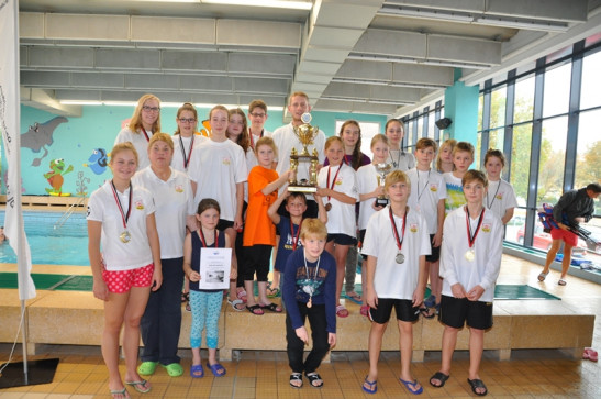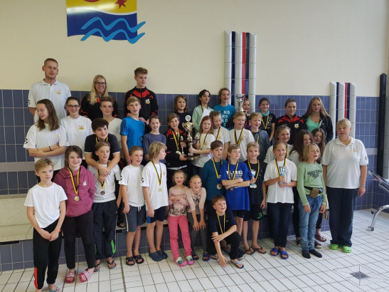 Am Samstag, dem 23.02.2019 fand in der Schwimmhalle Leuna in der Emil-Fischer-Straße 19 der alljährliche Leunapokal statt. Zusammen mit unserer Jugendleiterin Anastasia Holz auf der Heide und unserer Vorsitzenden Josephine Gießel reisten die Teilnehmer nach Leuna. Bei zahlreicher Erscheinung verschiedener Ortgruppen konnte der Wettkampf mit rund 130 Teilnehmern starten. Unsere Ortsgruppe nahm mit 18 Mitgliedern teil.  Unter anderem erreichten wir in der Altersklasse von 5-8 Jahren in einer Staffel den 1. Platz, in der Altersklasse von 8-12 Jahren wurden einmal der 1. Platz und einmal der 2. Platz erreicht. In der Gesamtwertung konnten unsere Kleinen den 1. Platz erschwimmen. Über den Pokal haben sie sich sehr gefreut. Es war ein sehr erfolgreicher und sc ... Mehr erfahren